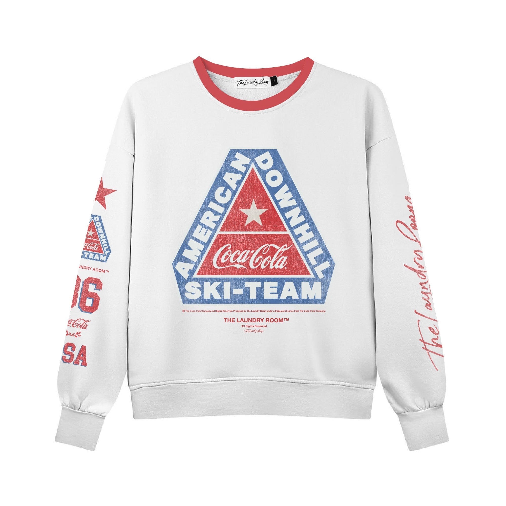 Coca Cola Downhil Ski - Classic Crewneck Sweater - White & Red & Blue