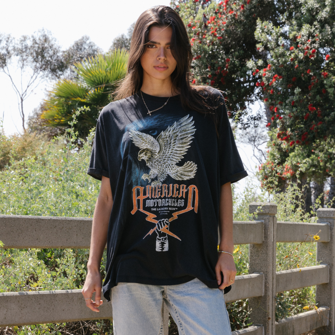 American Motorcycles - Oversized Tee - Black Snow